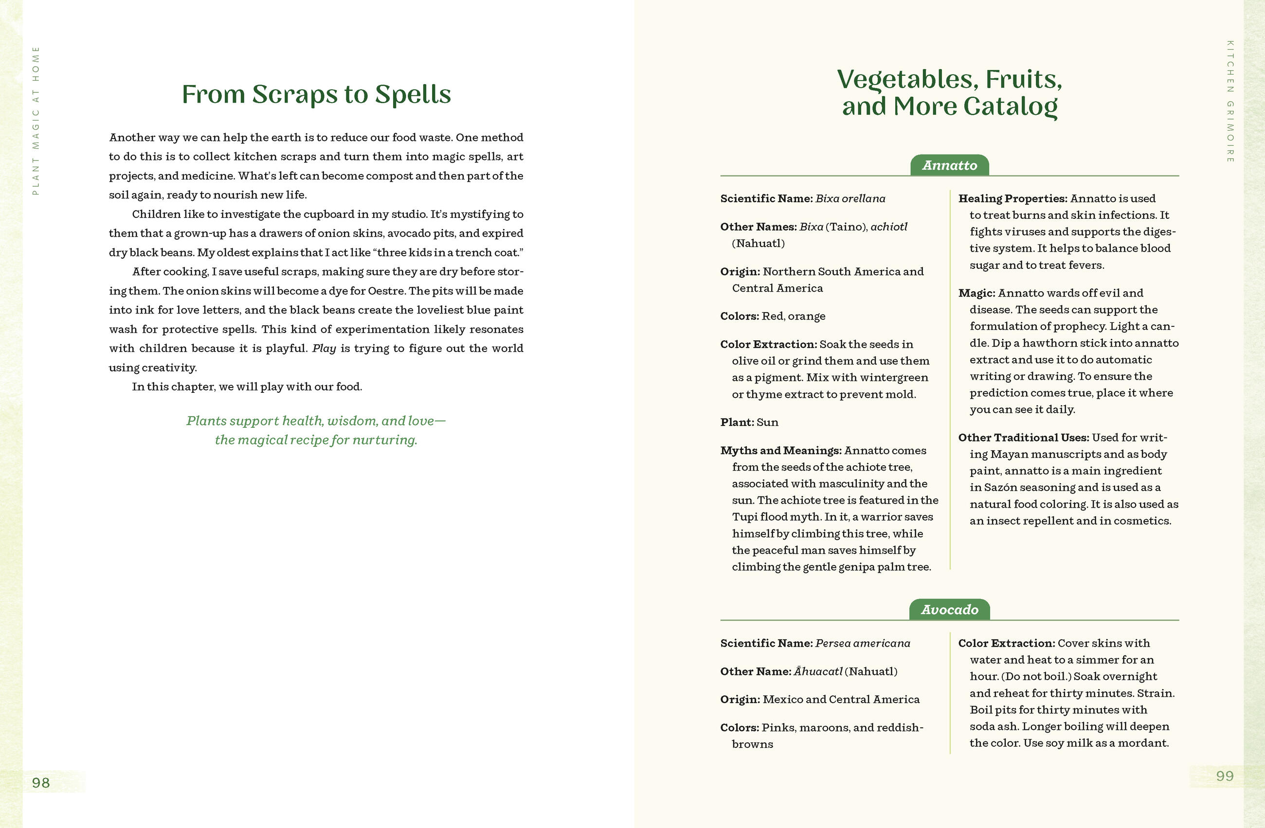 Whether you live in a forested lush area or are in the middle of a bustling urban environment, you can extract the properties and magic of plants. Plants hold the power of emotional and spiritual healing, which you can access through their physical or metaphysical properties. In this comprehensively researched book, split into three parts, (Gather, Harvest, Reap), you will learn how to forage or grow the plant, classify the plant, and then use its color or properties for no-waste sustainable spells or crafts.