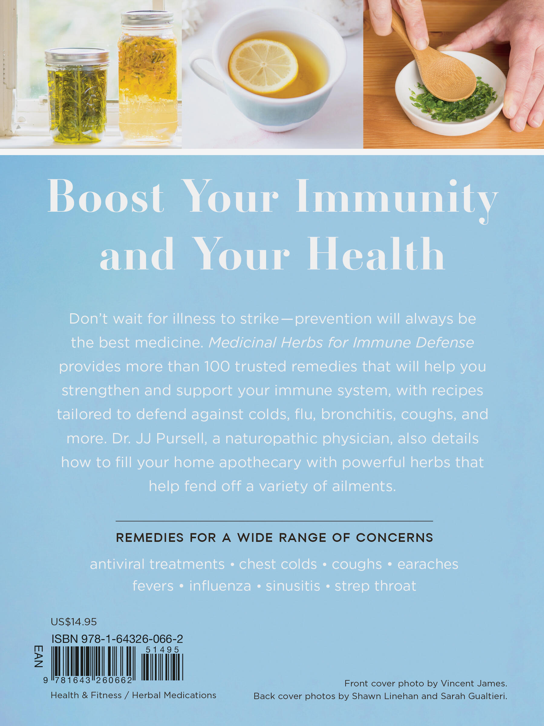 Medicinal Herbs for Immune Defense offers recipes that will help you support and build up your immune system, with recipes addressing common health concerns like colds, the flu, bronchitis, coughs, and more. The 104 recipes include capsules, salves, teas, tinctures and more that are safe and easy to create at home. You will also learn how to build a home apothecary and find value in a primer focused on the most powerful herbs. Don’t wait for illness to strike—prevention will always be the best medicine.