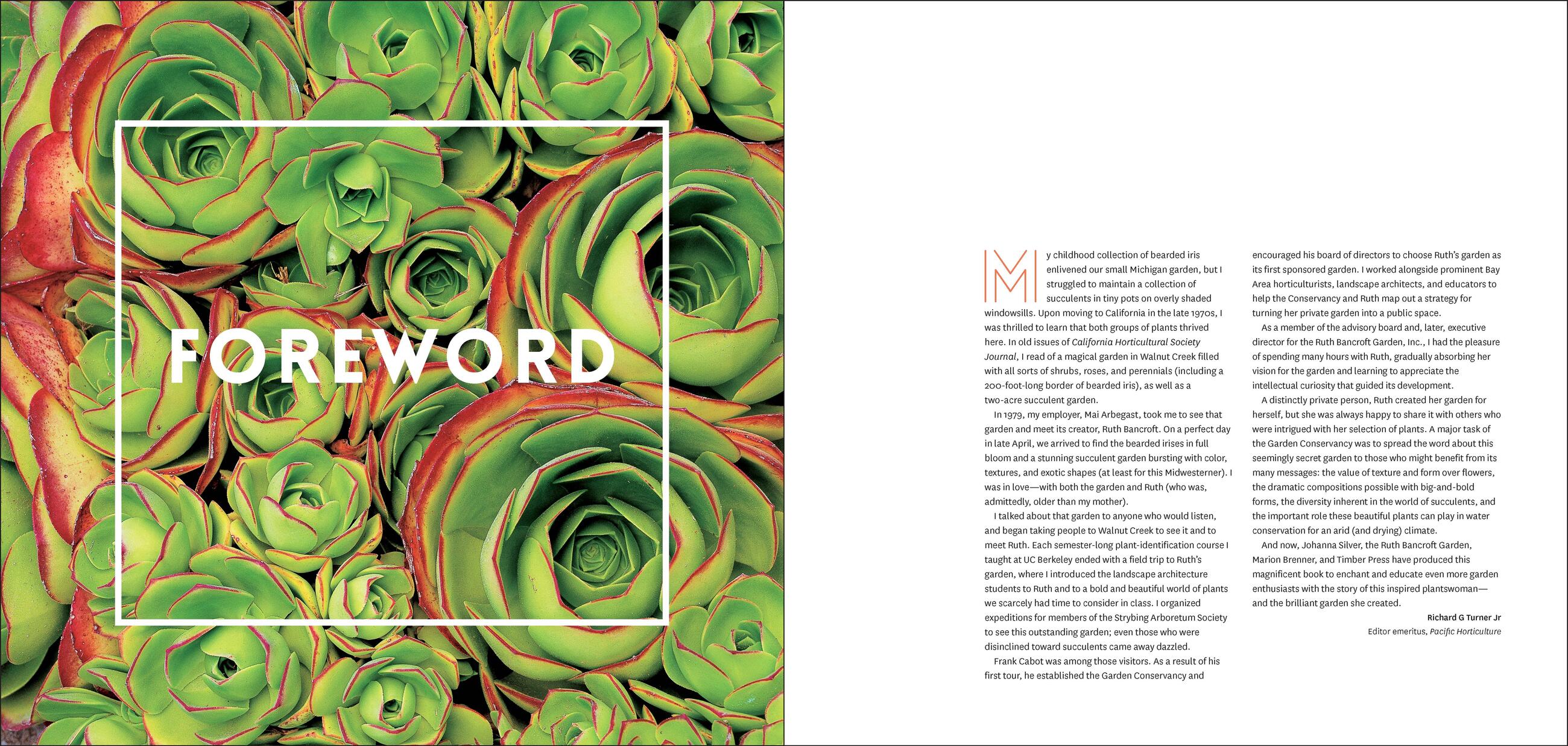 “A must for any garden-lover’s bookshelf, this book pairs Johanna Silver’s eloquent storytelling and Marion Brenner’s exquisite photography to show how the Ruth Bancroft Garden evolved into the 3.5-acre waterwise garden that it is today.” I>Garden Design Magazine
