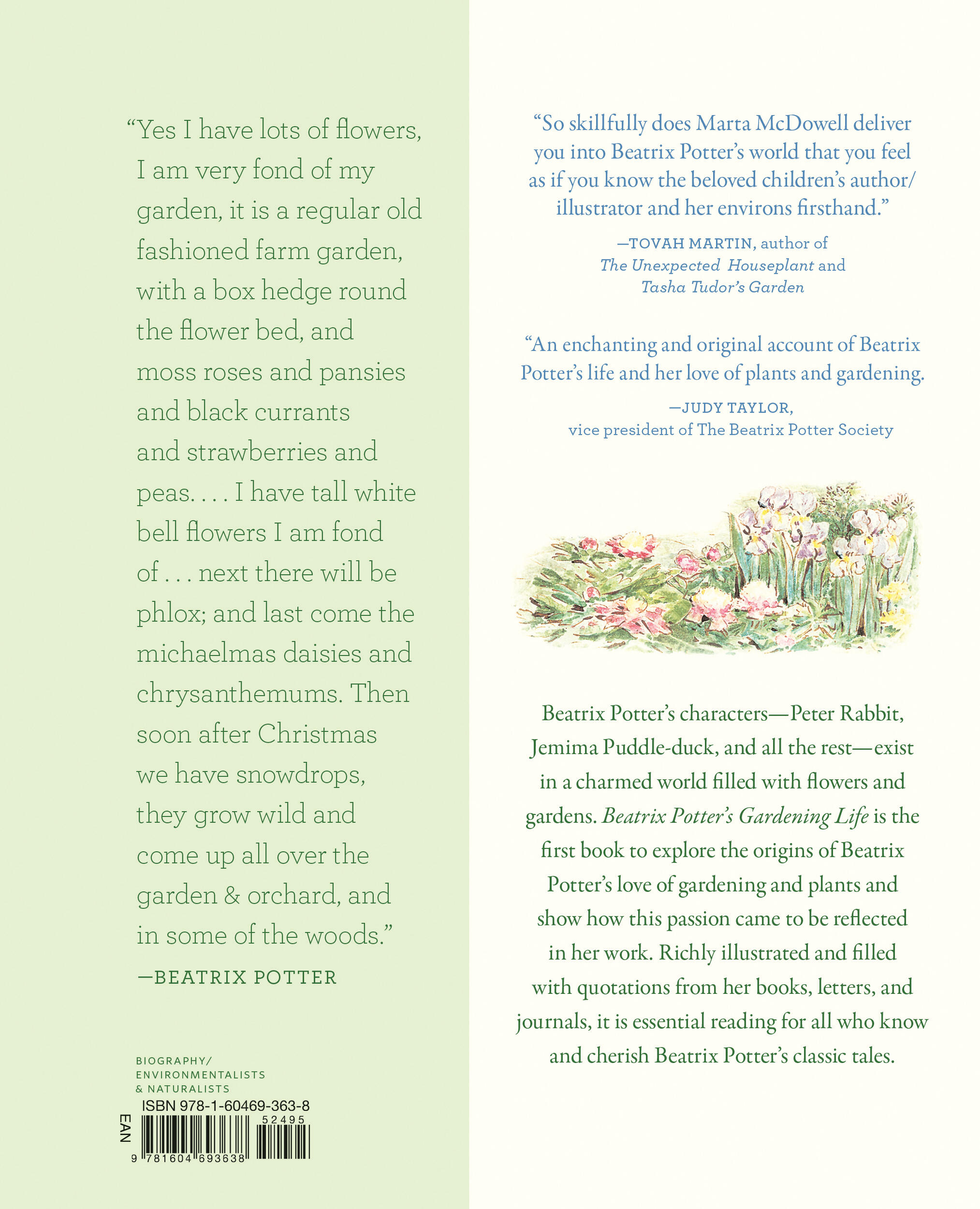 “You may well want to buy a copy to keep and several to give friends. . . . McDowell’s well-researched book (including plant lists) is nearly as good as a visit to the farm. From a watercolor of Jemima Puddle-duck hiding from a fox among the foxgloves, to sepia photos of Potter strolling the garden paths on a frosty morning, the book is a visual delight.”